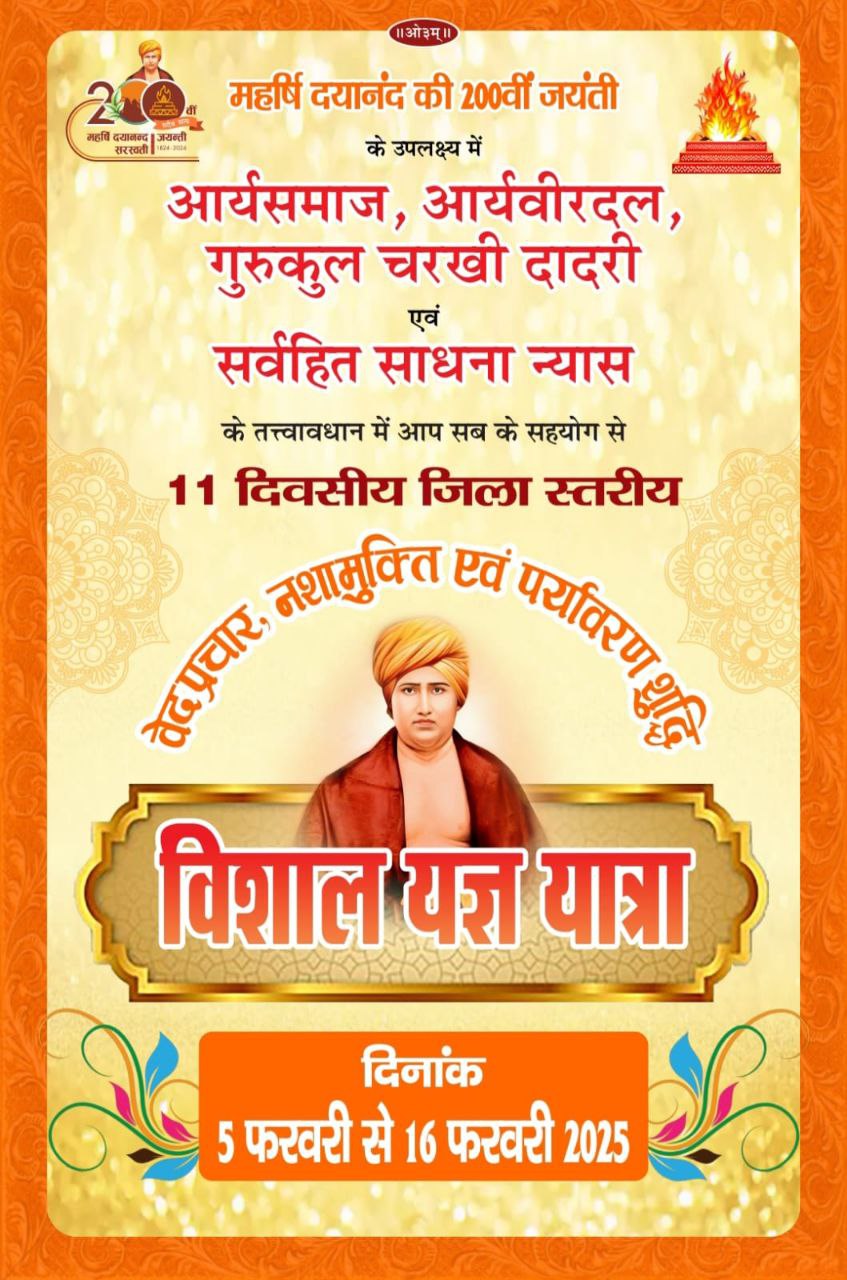 महर्षि दयानंद की 200वीं जयंती आर्यसमाज, आर्यवीरदल, गुरुकुल चरखी दादरी एवं सर्वहित साधना न्यास के तत्त्वावधान में आप सब के सहयोग से