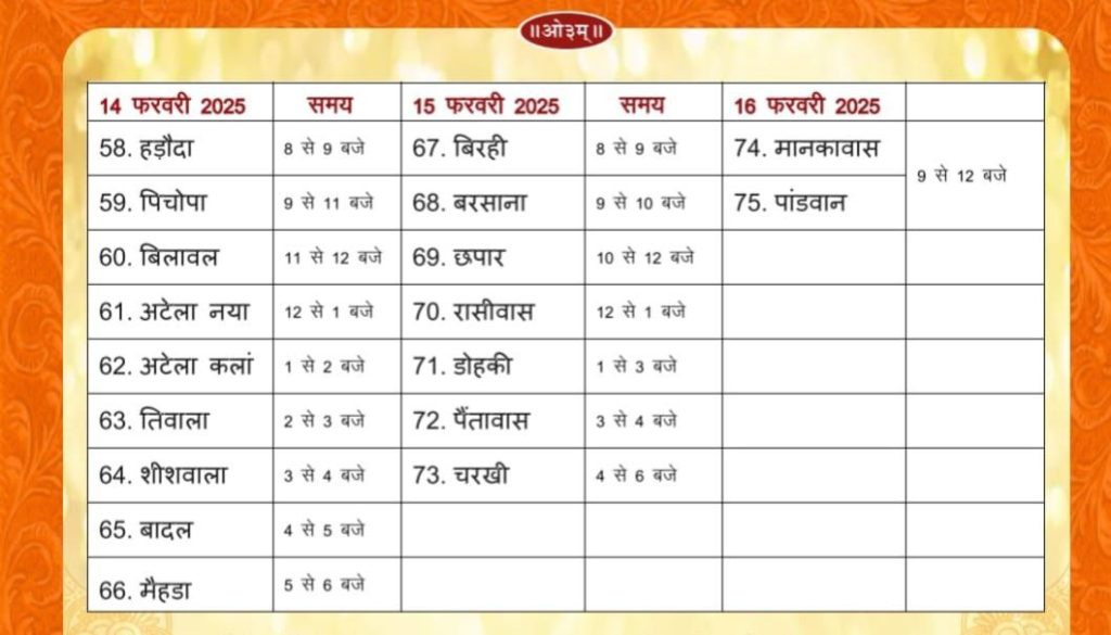 दिनांक 5 फरवरी से 16 फरवरी 2025