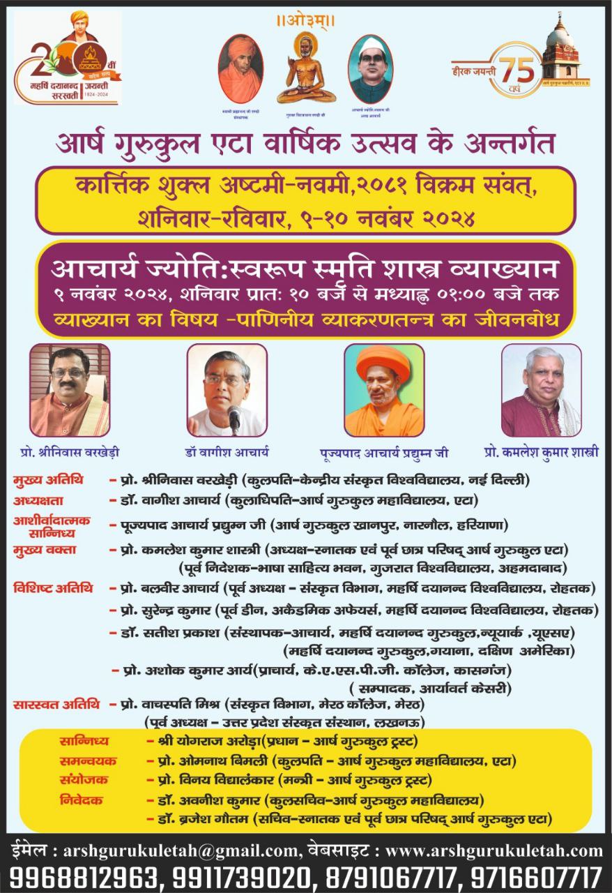 • मुख्य वक्ता – प्रो. कमलेश कुमार शास्त्री (अध्यक्ष-स्नातक एवं पूर्व छात्र परिषद् आर्ष गुरुकुल एटा) (पूर्व निदेशक-भाषा साहित्य भवन, गुजरात विश्वविद्यालय, अहमदाबाद)