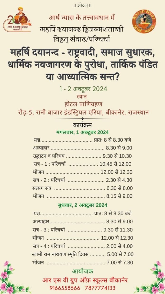 आर्ष न्यास के तत्त्वावधान में महर्षि दयानन्द द्विजन्मशताब्दी विद्वत् संवाद/परिचर्चा
