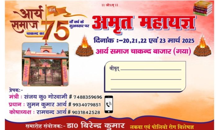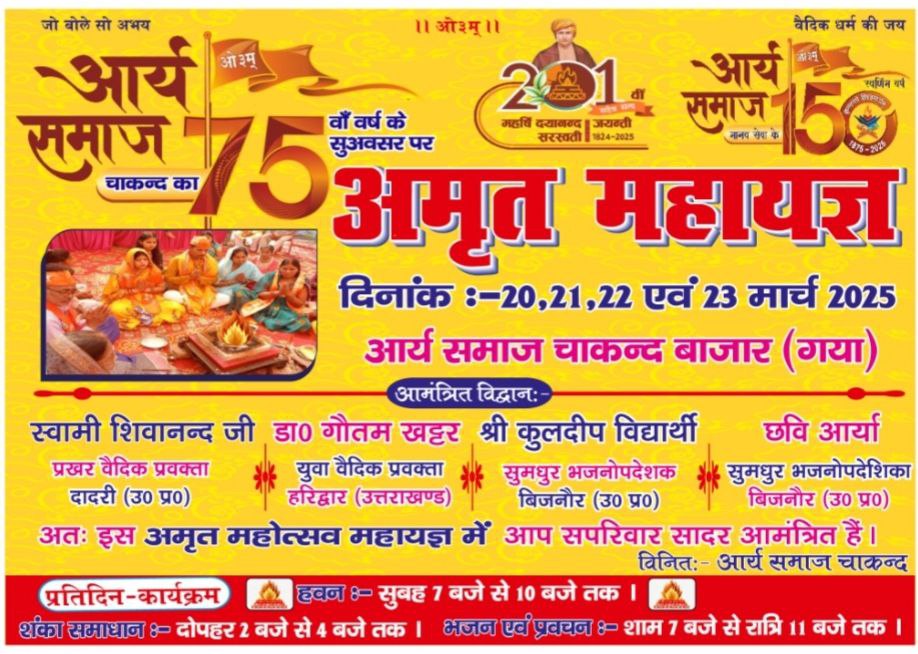 अतः इस अमृत महोत्सव महायज्ञ में आप सपरिवार सादर आमंत्रित हैं।