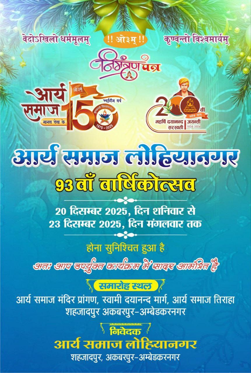 सभी श्रद्धालु जन एवं आर्य बंधु–भगिनी कार्यक्रम में सादर आमंत्रित हैं।