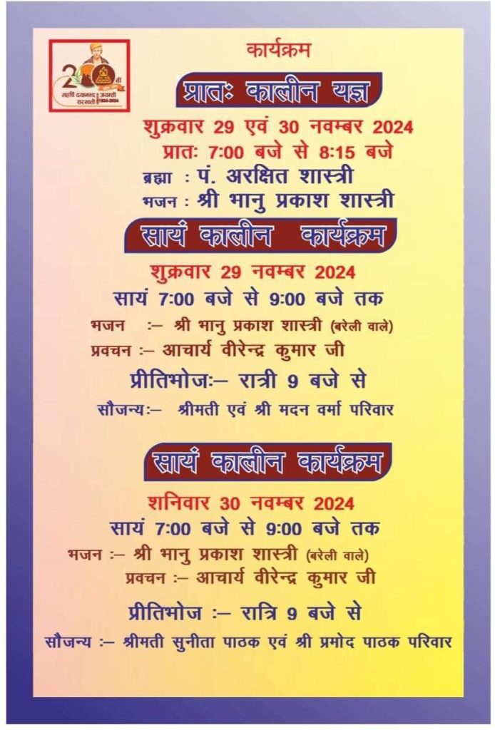 29 नवम्बर 2024 से 1 दिसम्बर 2024 तक आप सपरिवार व इष्ट मित्रों सहित सादर आमंत्रित हैं