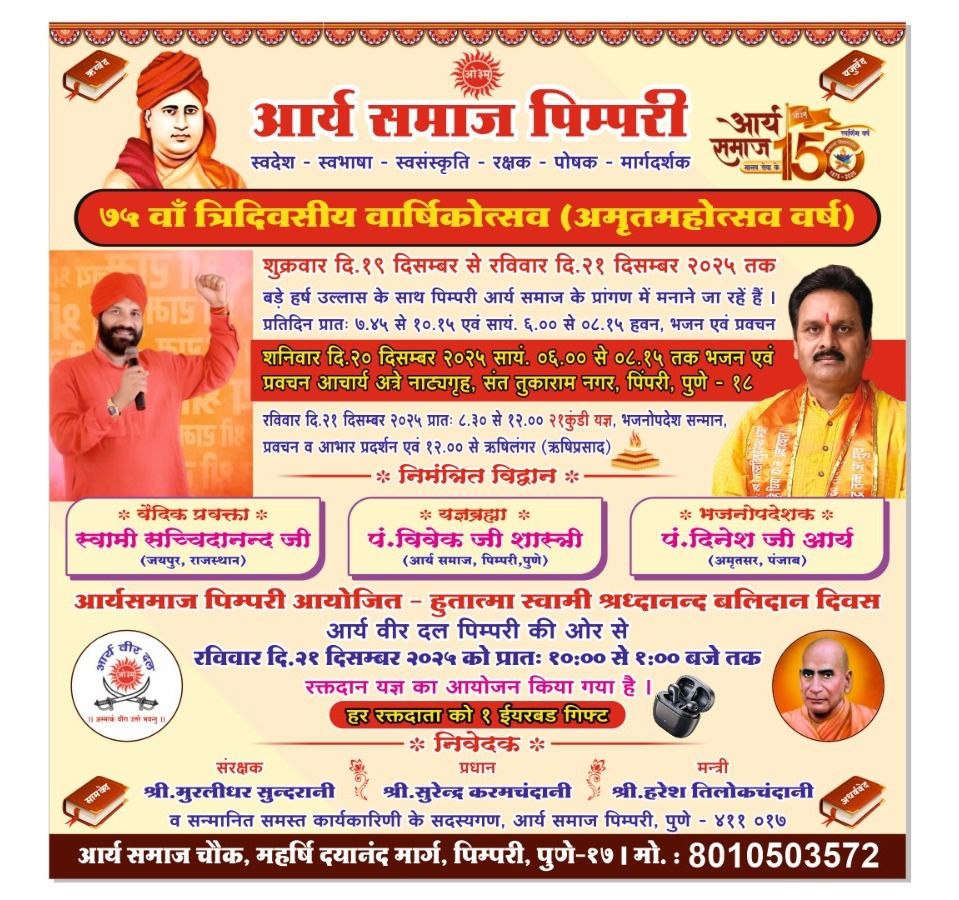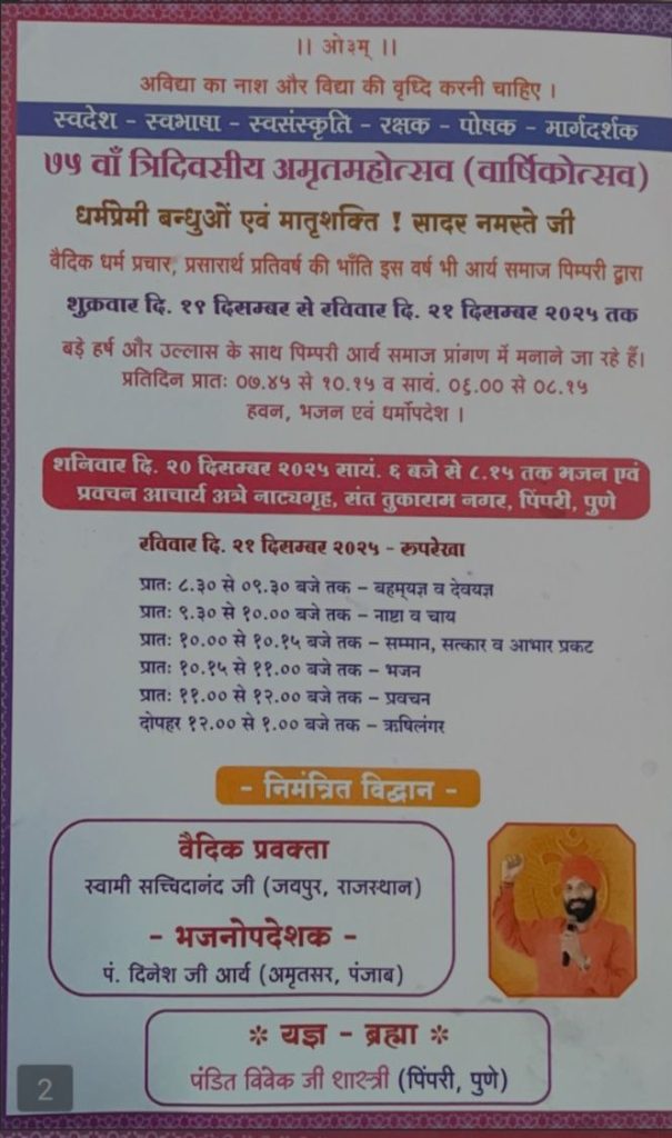 आर्य समाज पिंपरी का 75वाँ वार्षिकोत्सव : पुणे (महाराष्ट्र)