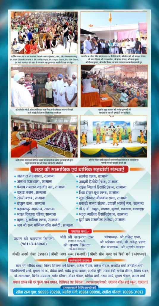 आर्य समाज, सामाना वार्षिक उत्सव एवं