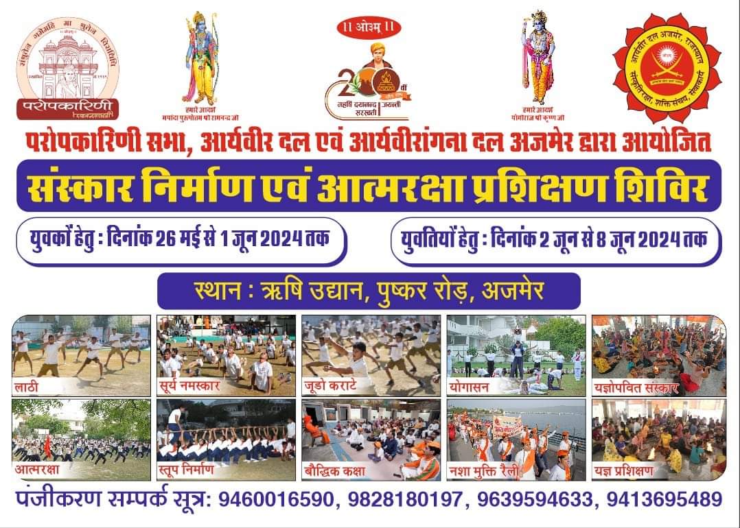 परोपकारिणी सभा, आर्यवीर दल एवं आर्यवीरांगना दल अजमेर द्वारा आयोजित
