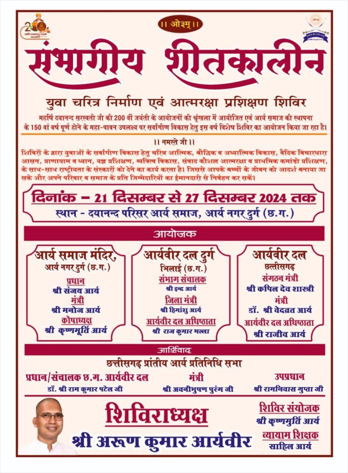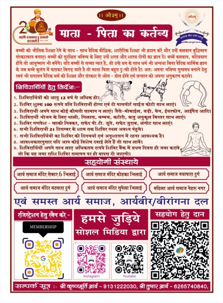 स्थान – दयानन्द परिसर आर्य समाज, आर्य नगर दुर्ग (छ.ग.)