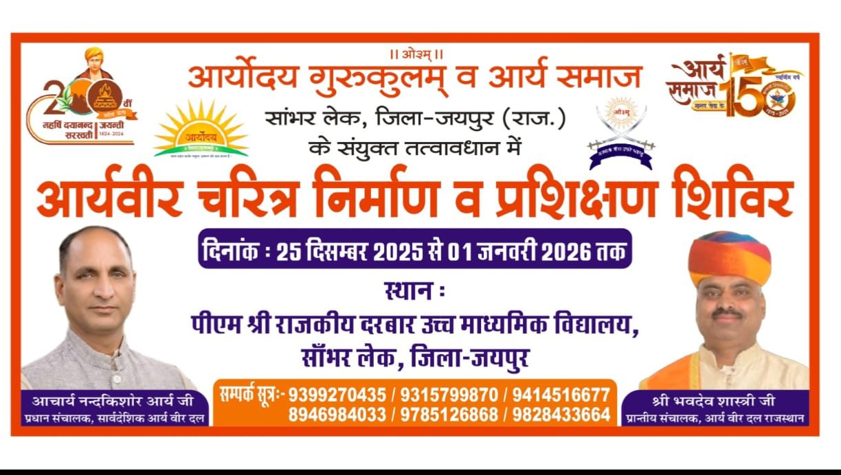 आर्यवीर चरित्र निर्माण व प्रशिक्षण शिविर 2025–26 | सांभर लेक, जयपुर (राज.)