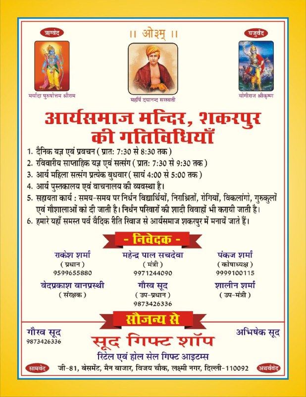 आर्यसमाज मन्दिर, शकरपुर की गतिविधियाँ