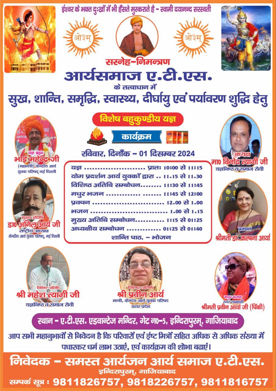 निवेदक – समस्त आर्यजन आर्य समाज ए.टी.एस. इन्दिरापुरम्, गाजियाबाद