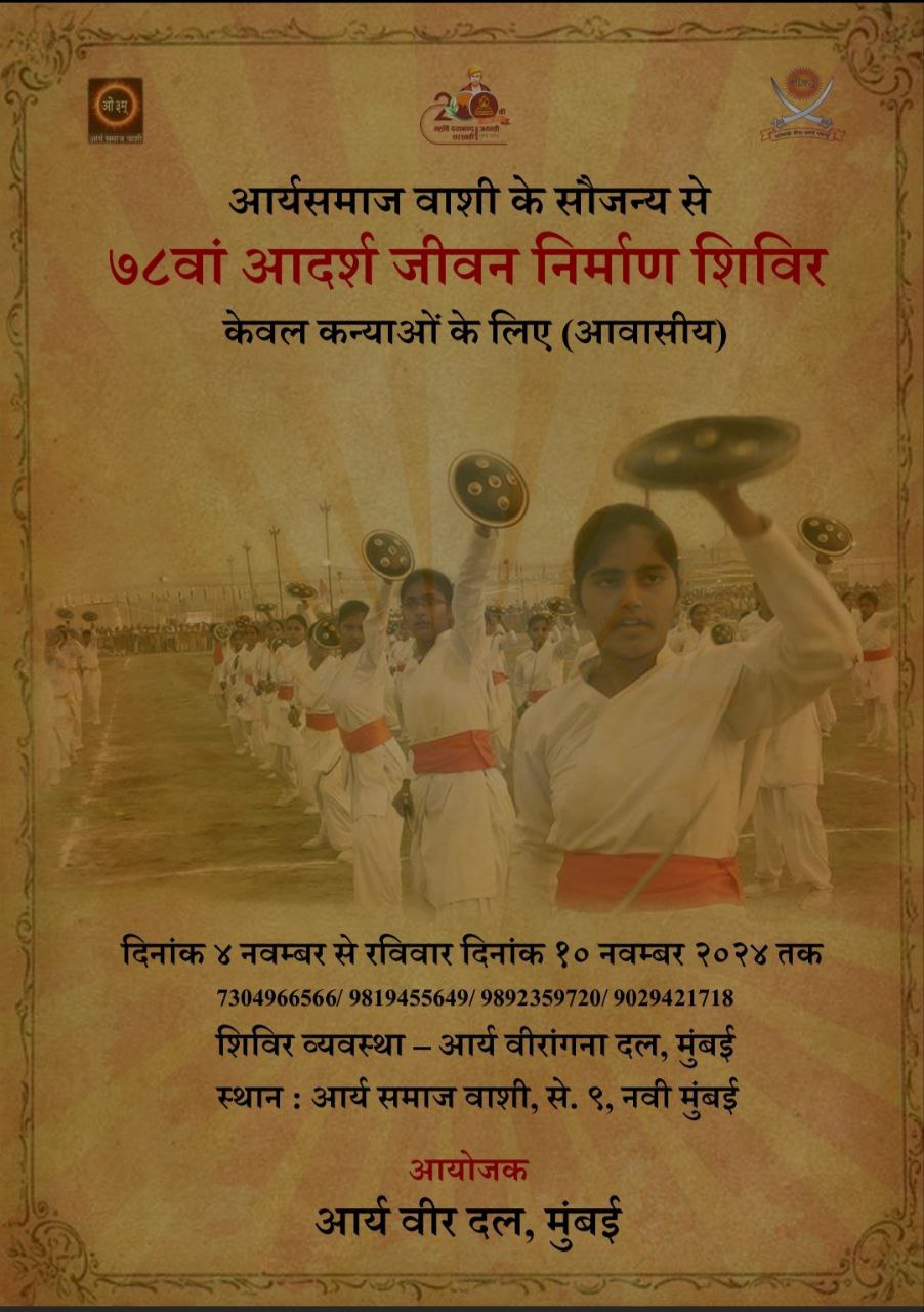 आर्यसमाज वाशी के सौजन्य से ७८वां आदर्श जीवन निर्माण शिविर