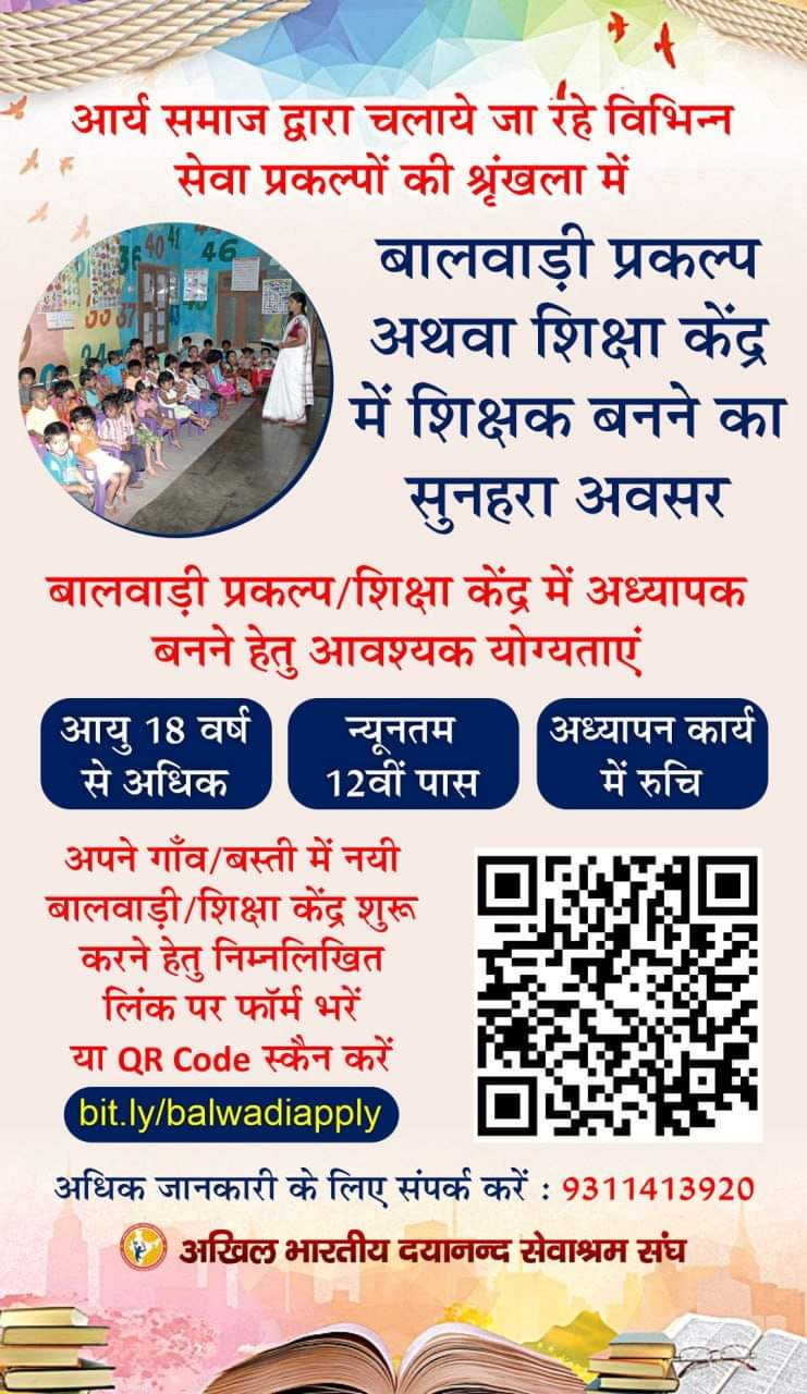 बालवाड़ी प्रकल्प अथवा शिक्षा केंद्र में शिक्षक बनने का सुनहरा अवसर