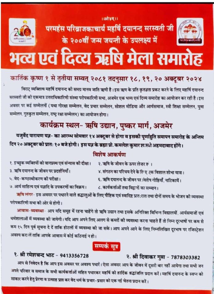 परमहंस परिव्राजकाचार्य महर्षि दयानन्द सरस्वती जी के २००वीं जन्म जयन्ती के उपलक्ष्य में
