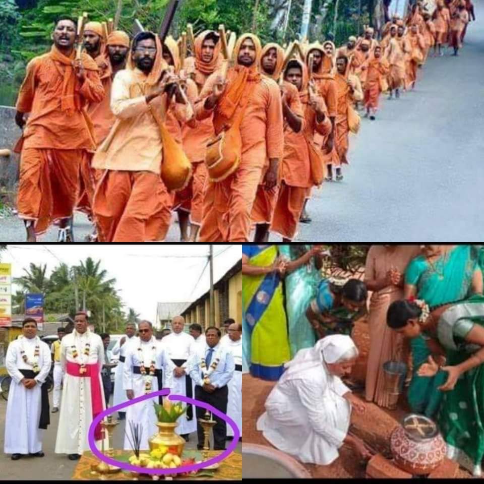 भगवा कपड़ा हिंदुओं में सन्यासी की पहचान है। मंगल कलश अर्थात जल भरा हुआ बर्तन जिस पर नारियल और आम या अशोक के पत्ते लगे हों केवल हिंदुओं में ही होता है। इसी तरह प्रसाद/ नैवैद्य/ यज्ञशेष या भोग शुद्ध हिन्दू परम्पराए हैं। इन सब की नकल करके हिंदुओं को धोखा दिया गया।