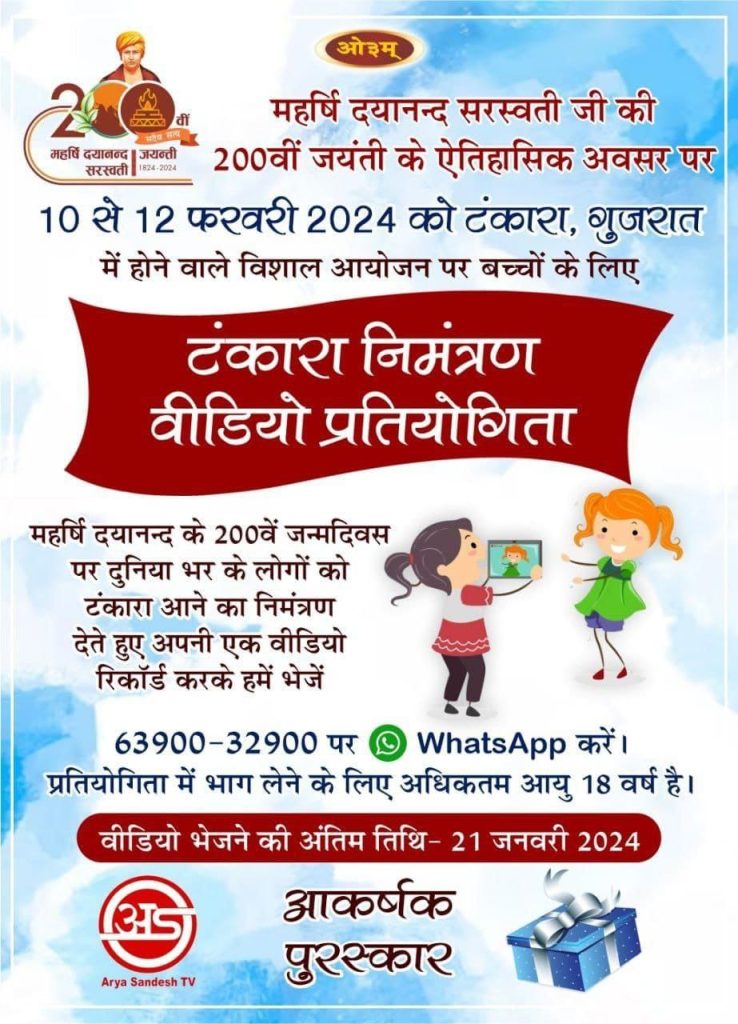 आओ चलें टंकारा – सम्पूर्ण विश्व में गूंजेगा दयानन्द का जयकारा – आओ चले टंकारा