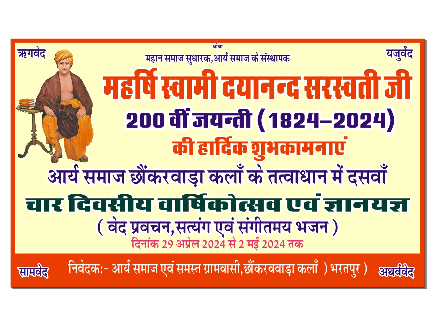महर्षि स्वामी दयानन्द सरस्वती जी 200 वीं जयन्ती (1824-2024) की हार्दिक शुभकामनाएं