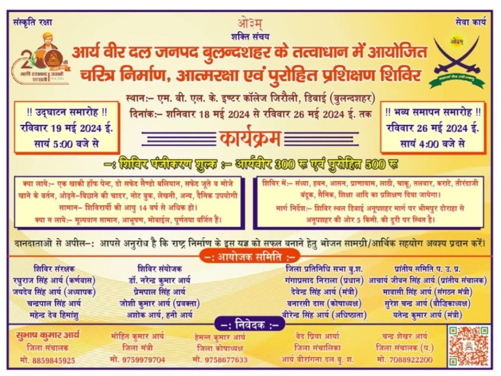 आर्य वीर दल जनपद बुलन्दशहर के तत्वाधान में आयोजित