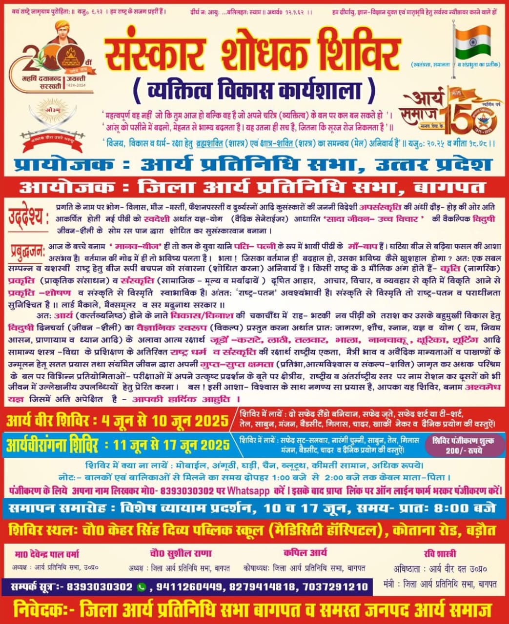 - आर्य वीर शिविर: 4 जून से 10 जून 2025