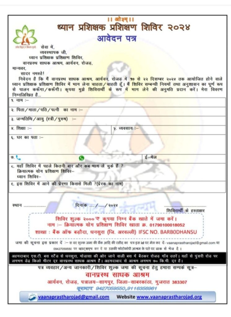 जमा की सूचना इस प्रकार दें श वर शुल्क जमा की बैंक आदि की रसीद का चत्र इस id पर मेल कर दें- vaanaprastharojad@gmail.com या 09427059550 पर व्हाट्सएप कर दें या उसकी फोटोकॉपी आश्रम के पते पर डाक से भेज दें।