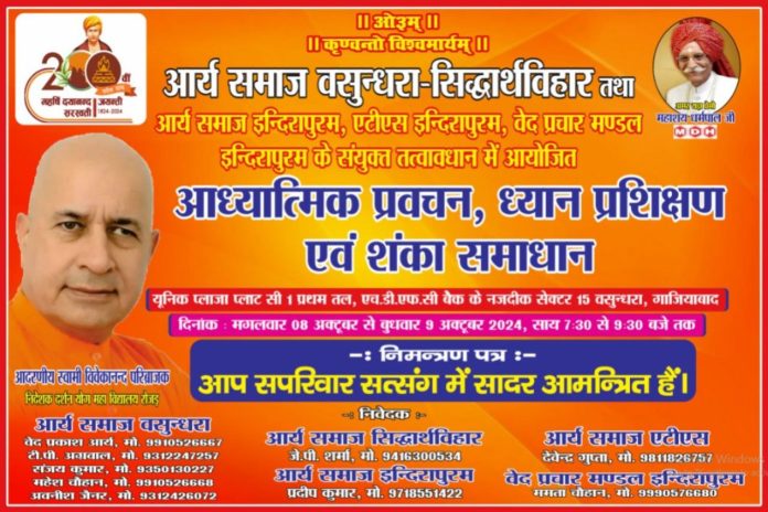 आर्य समाज इन्दिरापुरम, एटीएस इन्दिरापुरम, वेद प्रचार मण्डल इन्दिरापुरम के संयुक्त तत्वावधान में आयोजित