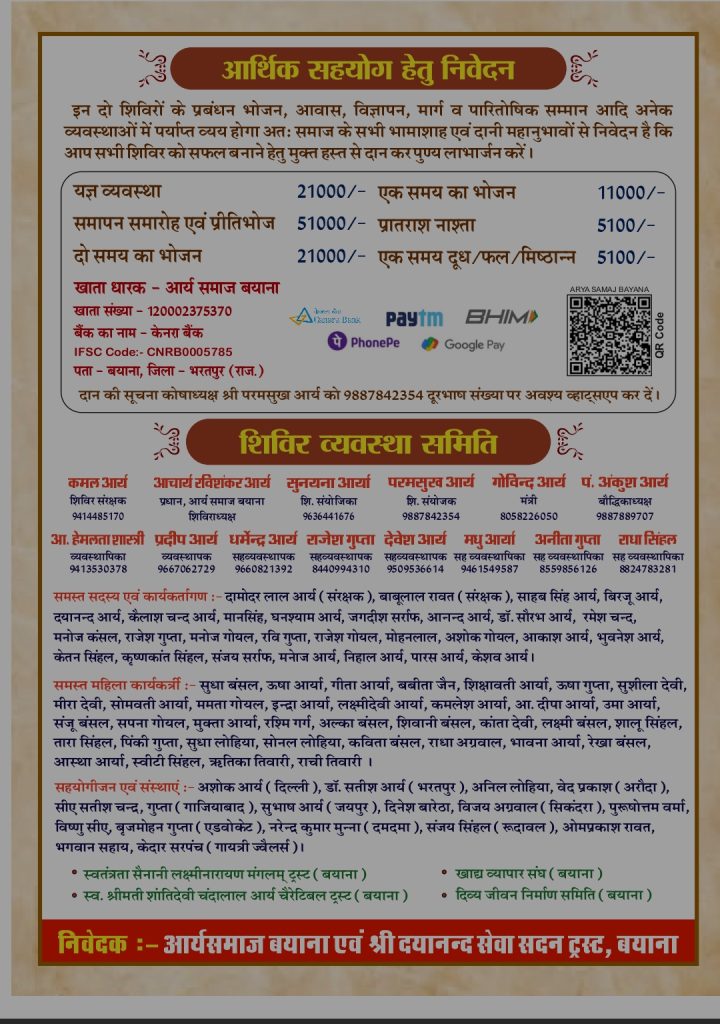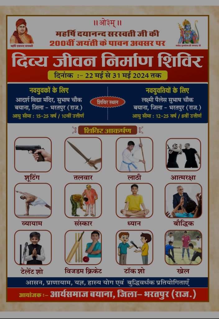आयोजक :- आर्यसमाज बयाना, जिला- भरतपुर (राज.)