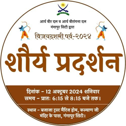 विशेष – आर्य वीरांगनाओं द्वारा भी शौर्य प्रदर्शन किया जाएगा।