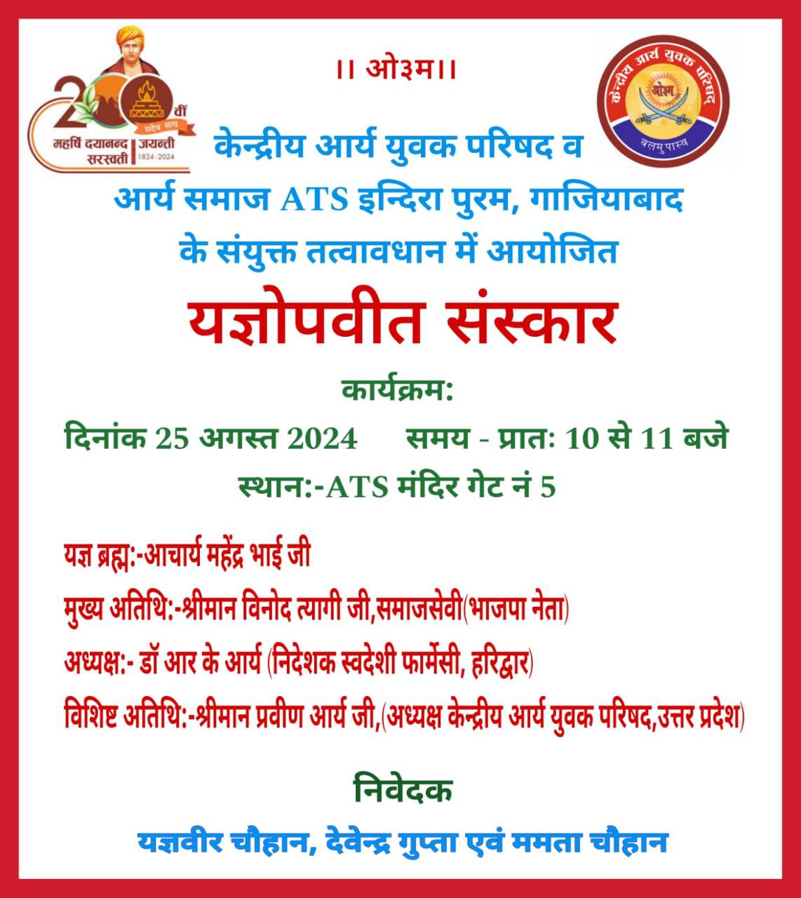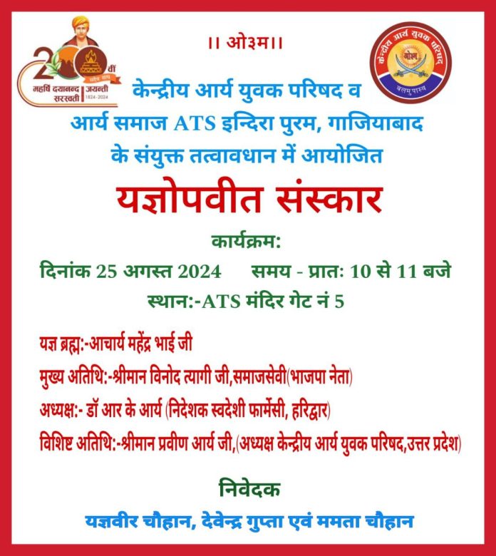 केन्द्रीय आर्य युवक परिषद व आर्य समाज ATS इन्दिरा पुरम, गाजियाबाद के संयुक्त तत्वावधान में आयोजित