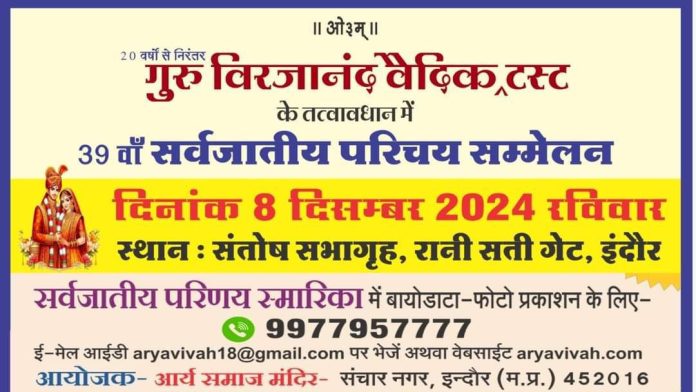 20 वर्षों से निरंतर गुरु विरजानंद वैदिक टस्ट के तत्वावधान में 39 वाँ सर्वजातीय परिचय सम्मेलन