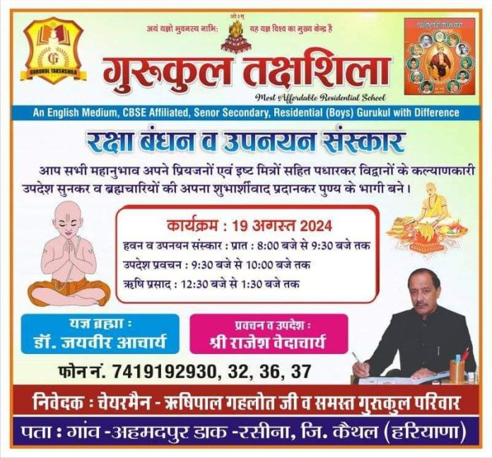 गुरुकुल तक्षशिला में रक्षा बंधन व उपनयन संस्कार