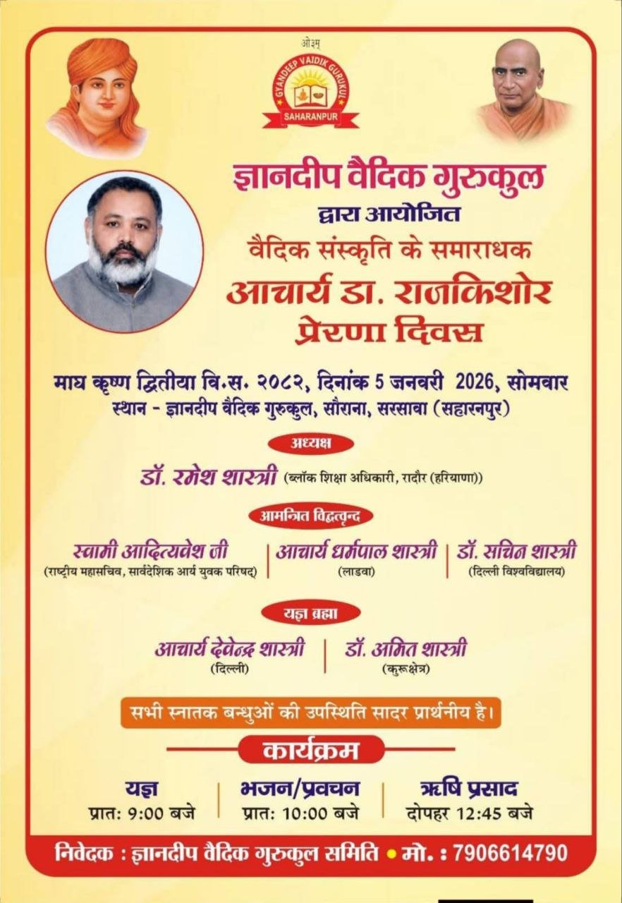 🙏 सभी स्नातक बंधुओं, विद्वत्जनों एवं आर्य समाज के सम्माननीय सदस्यों की गरिमामयी उपस्थिति सादर प्रार्थनीय है।
