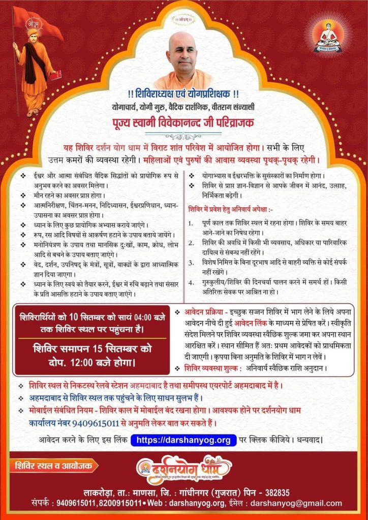 !! शिविराध्यक्ष एवं योगप्रशिक्षक !! योगाचार्य, योगी गुरु, वैदिक दार्शनिक, वीतराग संन्यासी पूज्य स्वामी विवेकानन्द जी परिव्राजक