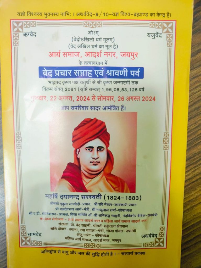 आर्य समाज, आदर्श नगर, जयपुर के तत्वावधान में