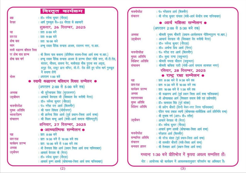 नोट : आयोजकों को कार्यक्रम में आवश्यकतानुसार परिवर्तन का अधिकार सुरक्षित है।