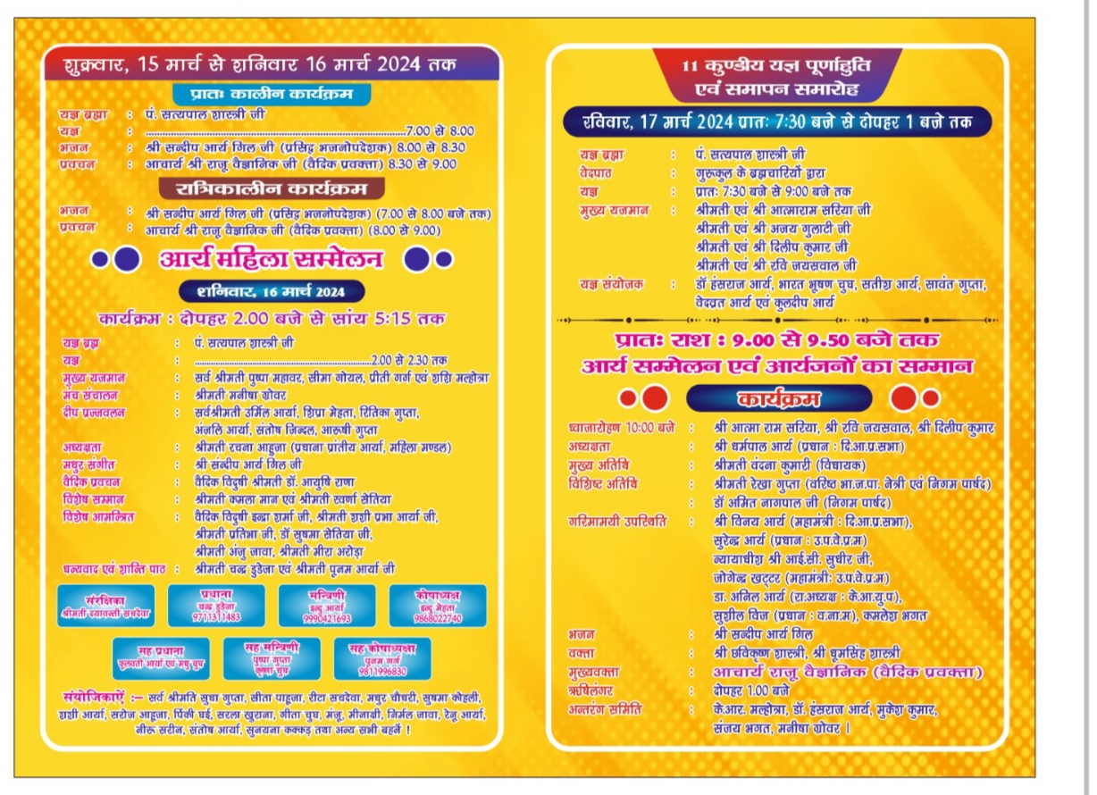 सुबह 9 बजे से 9.50 बजे तक आर्य सम्मेलन एवं आर्यजनों का सम्मान