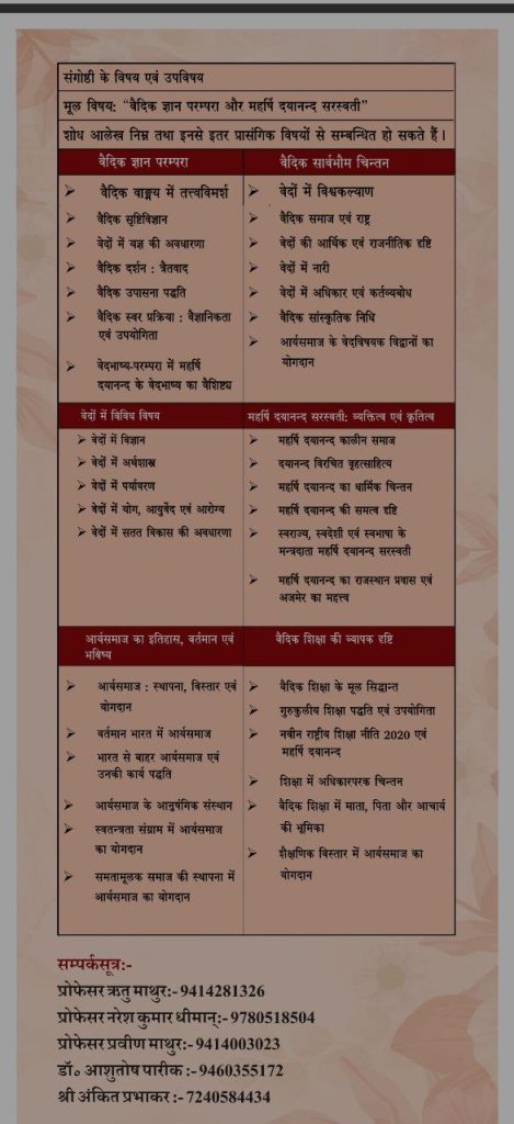 आयोजन सचिव- प्रोफेसर ऋतु माथुर (निदेशक, महर्षि दयानन्द शोधपीठ)