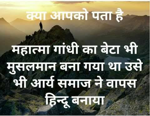 महात्मा गांधी के पुत्र को पुनः सनातन वैदिक धर्म में लाने का काम आर्य समाज ने किया