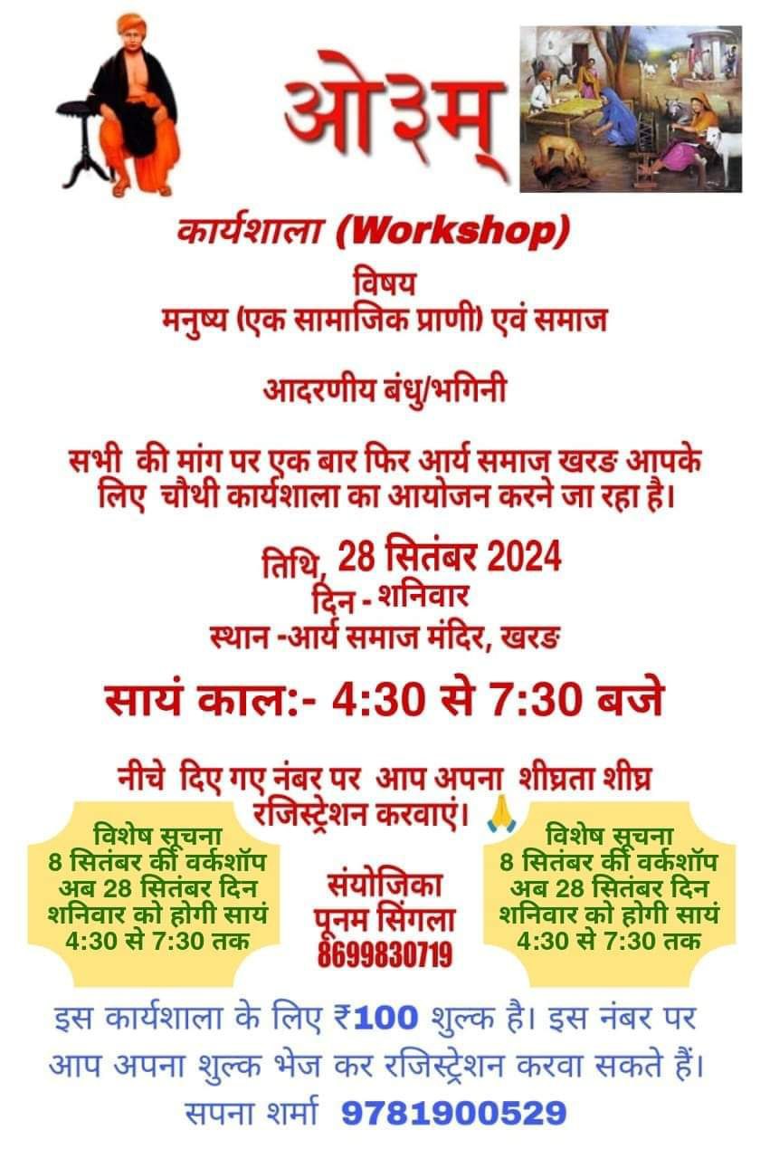 सभी की मांग पर एक बार फिर आर्य समाज खरङ आपके लिए चौथी कार्यशाला का आयोजन करने जा रहा है।
