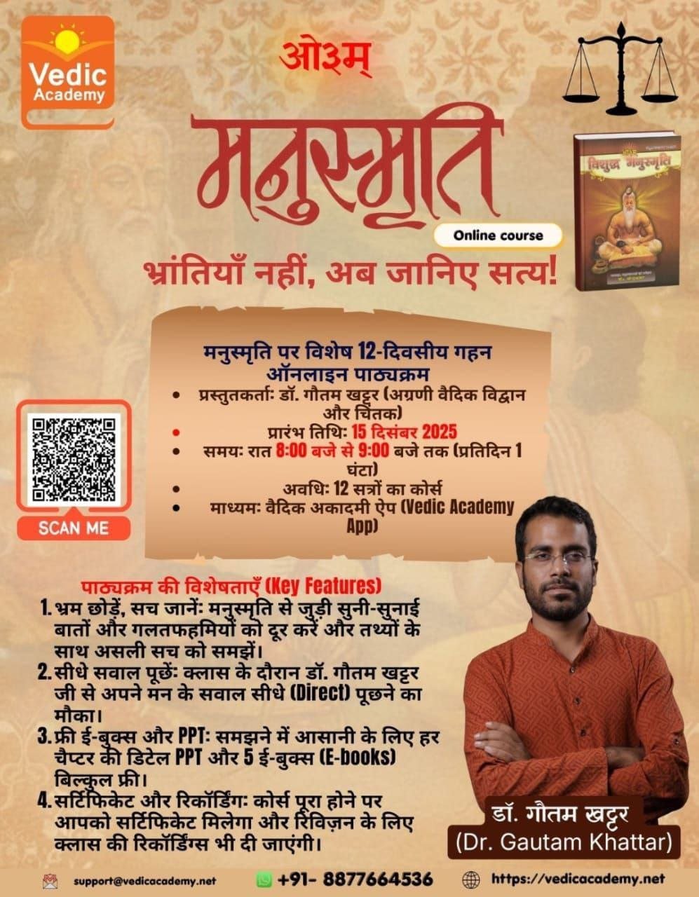 मनुस्मृति पर विशेष 12-दिवसीय गहन ऑनलाइन पाठ्यक्रम