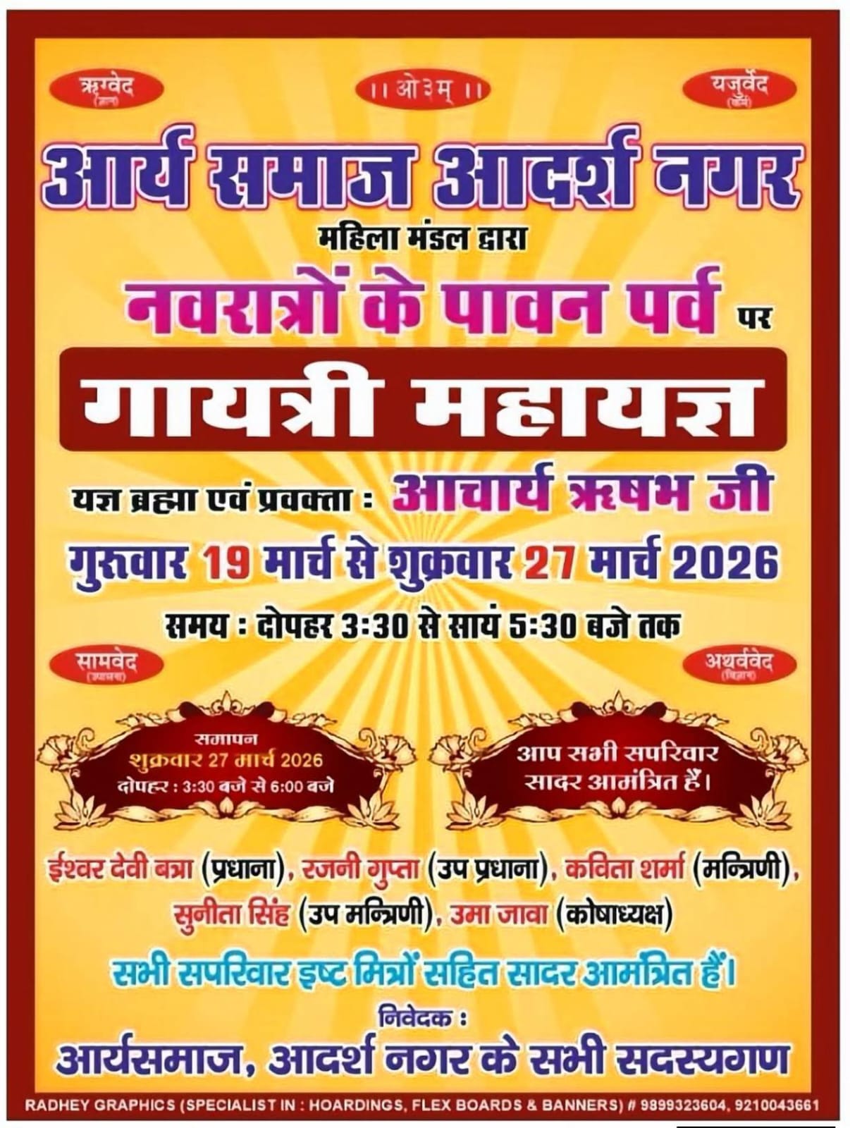 - आयोजक: आर्य समाज आदर्श नगर (महिला मंडल)