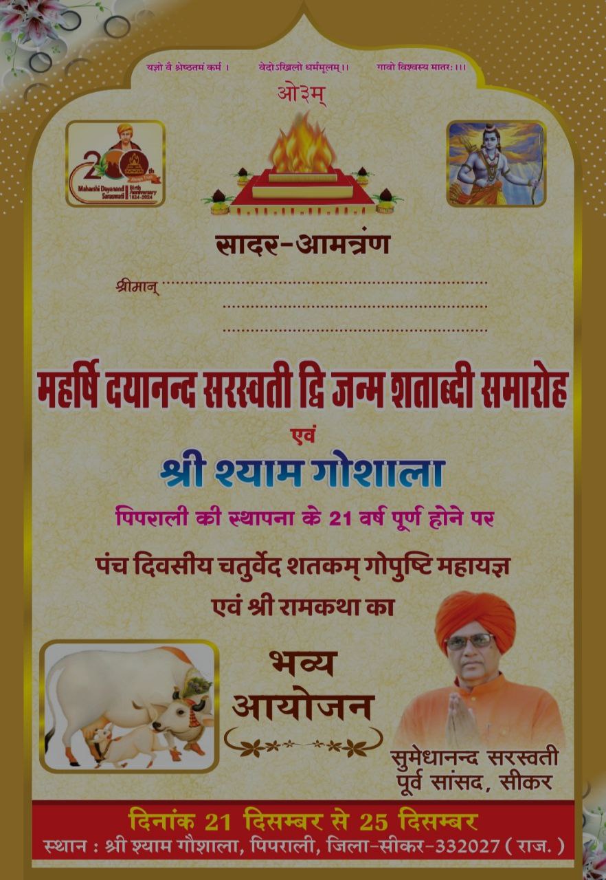 स्थान : श्री श्याम गौशाला, पिपराली, जिला-सीकर-332027