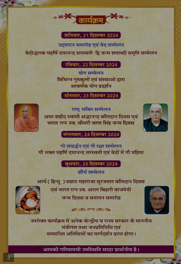 आर्य (हिन्दू) सम्राट महाराजा सूरजमल बलिदान दिवस एवं भारत रत्न स्व. अटल बिहारी वाजपेयी जन्म दिवस व समापन समारोह