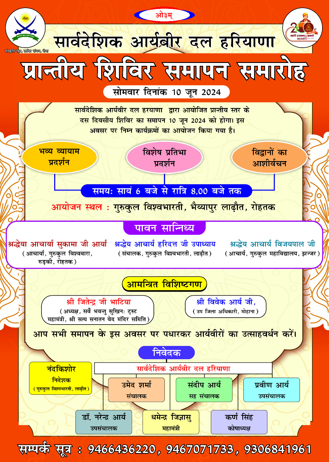 आप सभी समापन के इस अवसर पर पधारकर आर्यवीरों का उत्साहवर्धन करें।