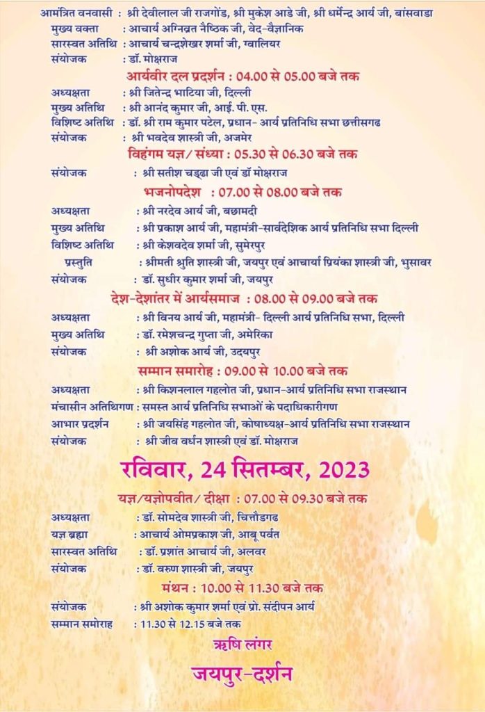 संयोजक : श्री जीव वर्धन शास्त्री जी, मंत्री आर्य प्रतिनिधि सभा राजस्थान