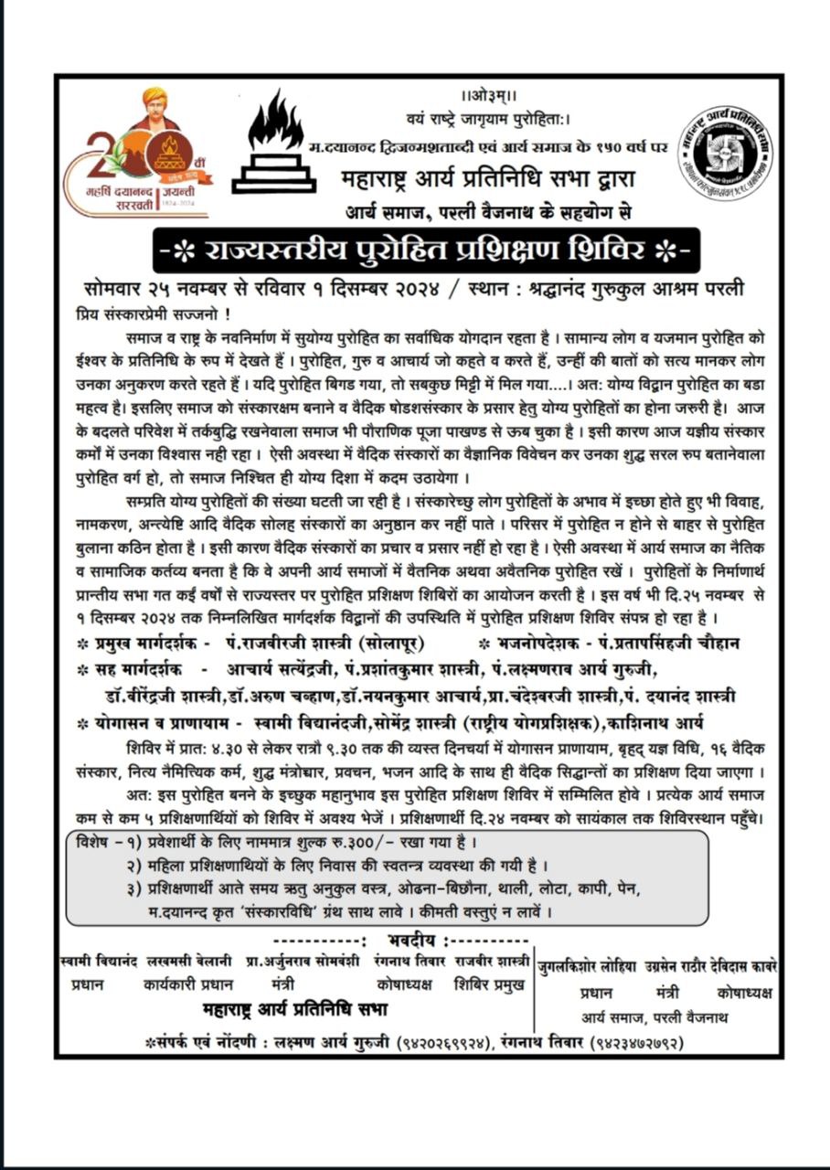 राज्यस्तरीय पुरोहित प्रशिक्षण शिविर, परली