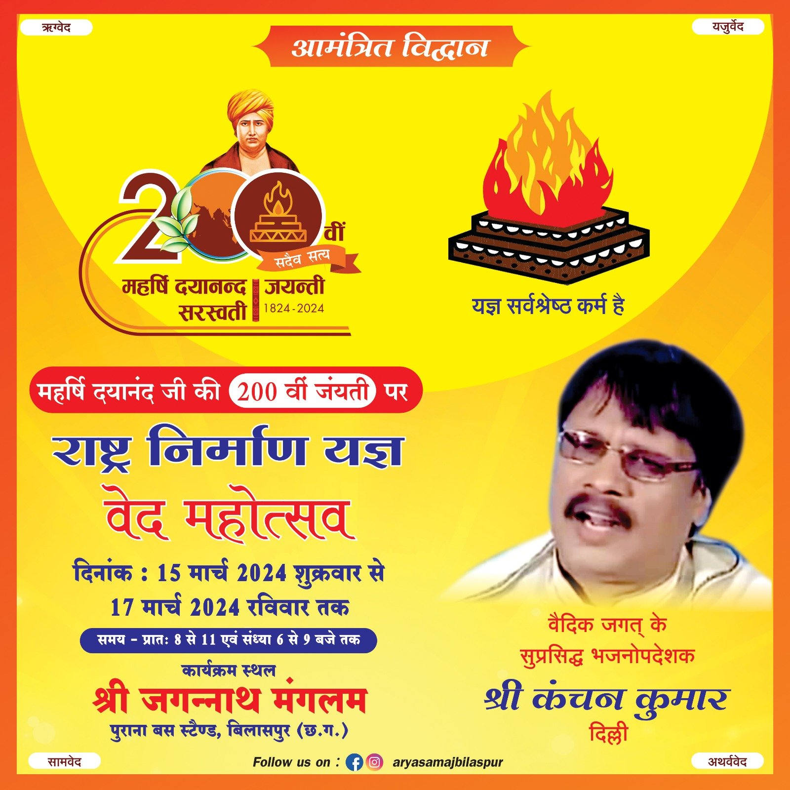 महर्षि दयानंद जी की 200 वीं जंयती पर राष्ट्र निर्माण यज्ञ वेद महोत्सव