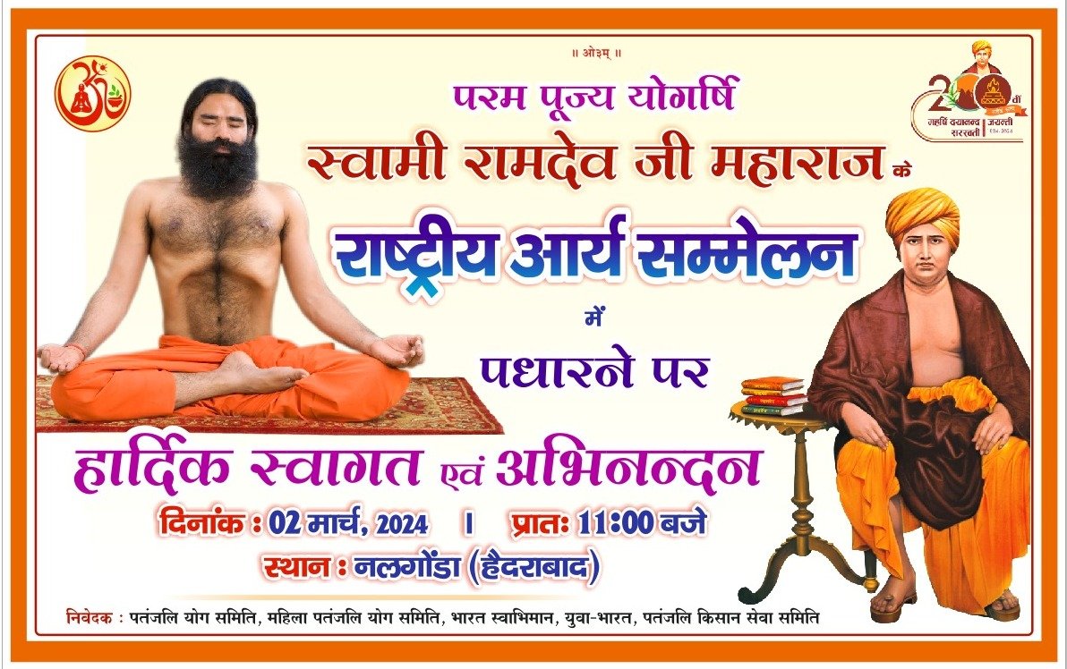 परम पूज्य योगर्षि स्वामी रामदेव जी महाराज के राष्ट्रीय आर्य सम्मेलन में पधारने पर।