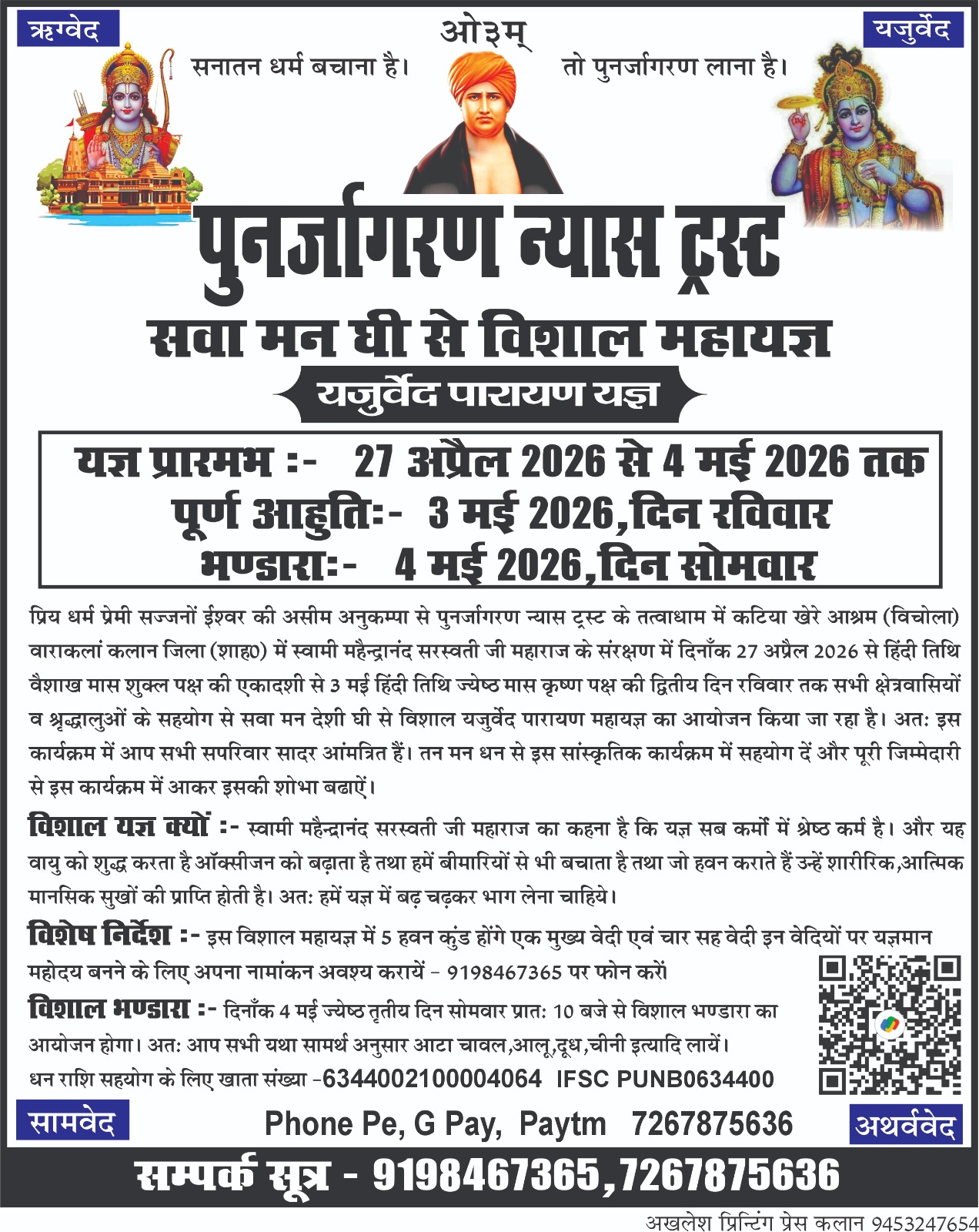 सभी धर्मप्रेमी सज्जनों से निवेदन है कि सपरिवार इस विशाल वैदिक महायज्ञ में पधारकर कार्यक्रम की शोभा बढ़ाएँ और सनातन धर्म के पुनर्जागरण में अपना योगदान दें।