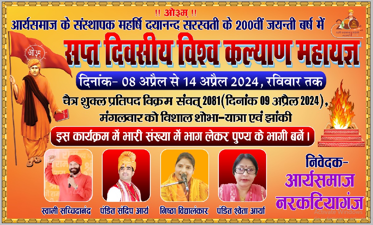 आर्यसमाज के संस्थापक महर्षि दयानन्द सरस्वती के 200वीं जयन्ती बर्ष में