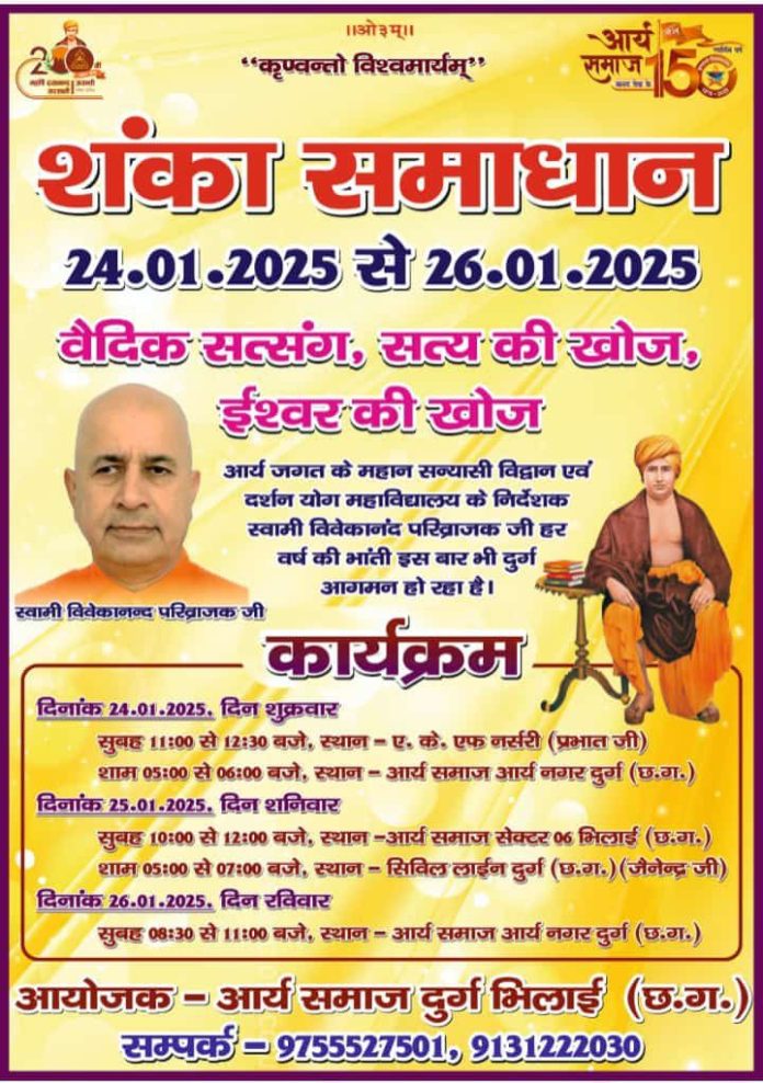 आयोजक – आर्य समाज दुर्ग भिलाई (छ.ग.)
