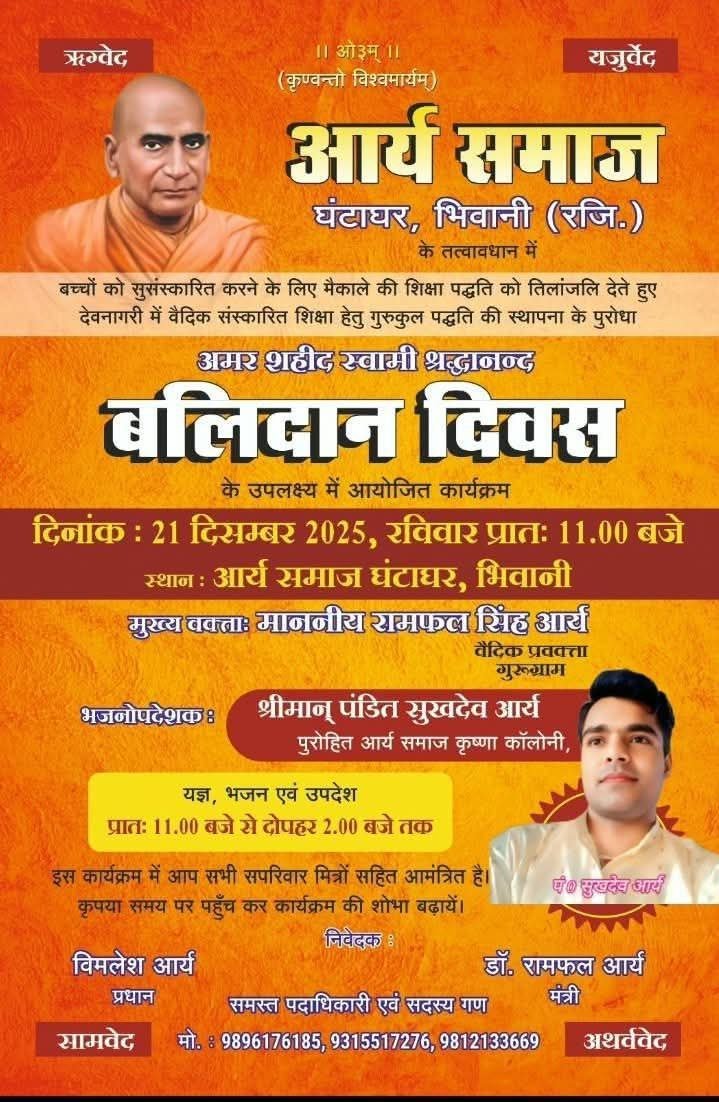स्थान: आर्य समाज घंटाघर, भिवानी